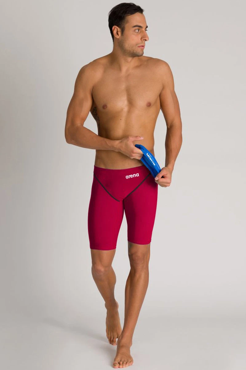 Get ready for Powerskin ST 2.0. These racing jammers for men have better resilience, better compression and better stretch. We revamped our tech swimsuit for racers and swimmers of all levels with three high-tech knit fabrics and a durable lining for optimal muscle support and freedom of movement. All seams are flatlock for a snug fit against the body, and the new ergonomic seam placement improves body and leg position in the water. Enhanced support and comfort plus a sleek finish make our newest Powerskin ST a high performance swimsuit with exceptional hydrodynamics. This FINA-approved design is a comprehensive racing and training solution.
