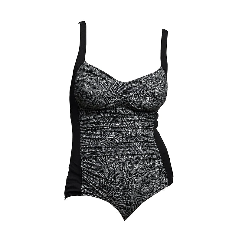 Fashion and function combine in this gathered style with flattering bust support and slimming panellinig to give you a streamlined look