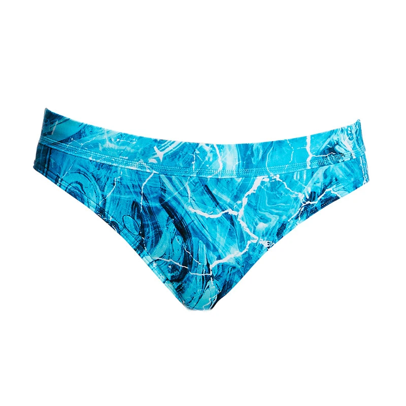 Hipster sports brief with drawcord and flat elastic waistband. Moderate leg rise and rear coverage. Sold as separates.