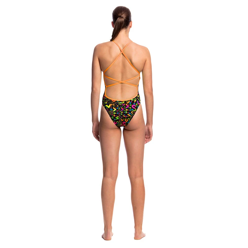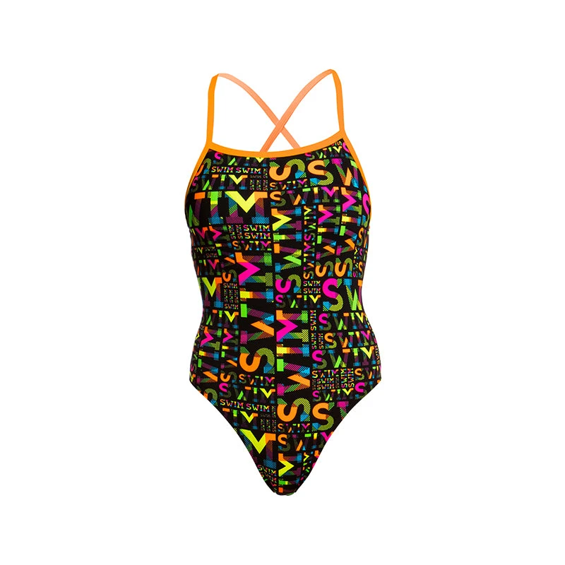You’ll be sure to get noticed on pool deck in our strappiest one piece yet! Single strap binds that criss cross down your back with a moderately high cut leg and full front lining.