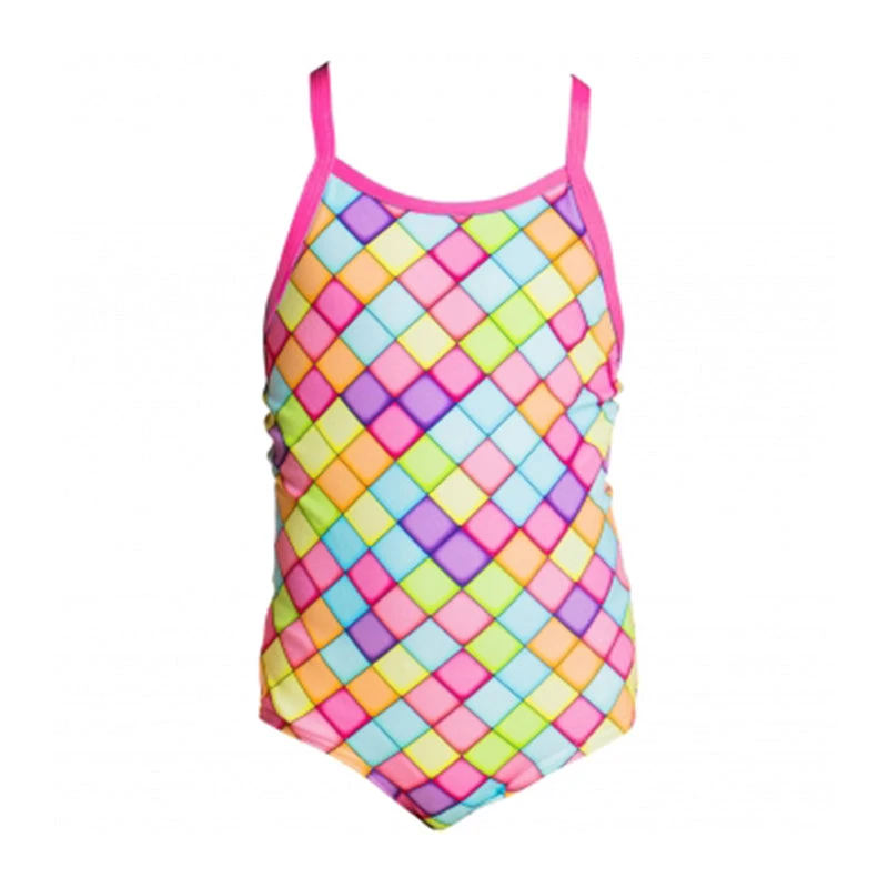 With full back coverage and a racer strap finish, this simple style is easy to put on and take off. Features a low leg, single strap bind with Funkita embroidered logo and full front lining. Available in sizes 1 – 6.