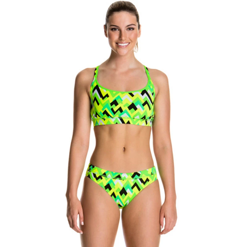 Hipster sports brief with drawstring and flat elastic waistband. Moderate leg rise and rear coverage. Made from C-Infinity a colour intense chlorine resistant Polyester exclusive to Funkita and Funky Trunks. Single front Polyester lining.