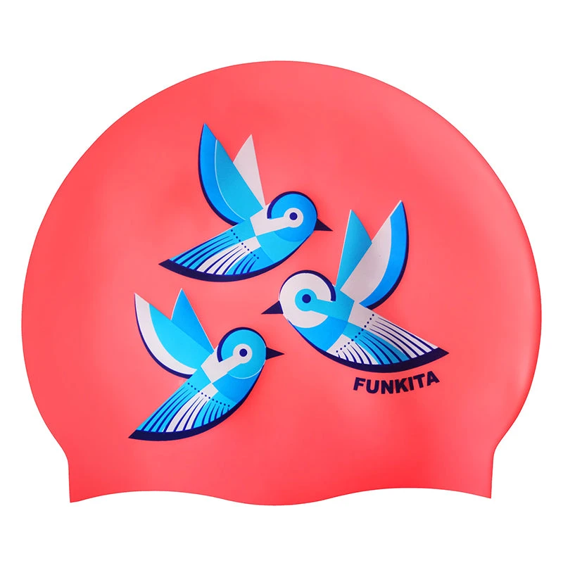 Comfortable and durable silicone swimming caps that are latex free.