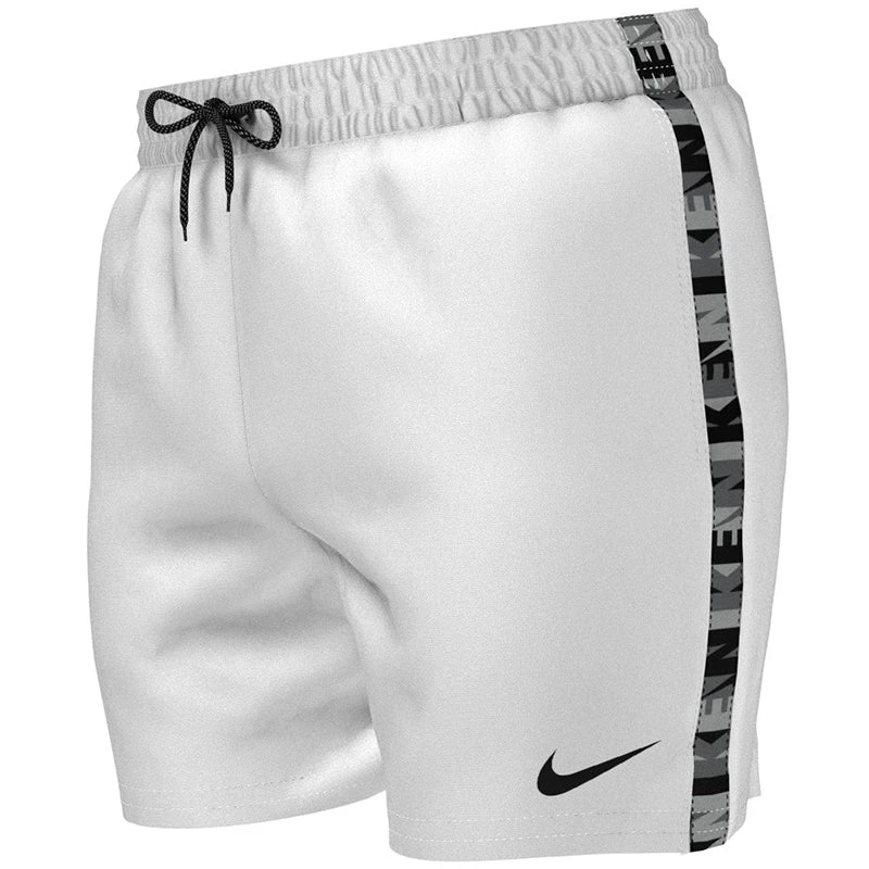 Make waves in the Men’s Nike Swim Logo Tape 5″ Volley Short. Branded tape down the sides adds eye-catching detail to these sporty solid swimming trunks. They’re made with a lightweight polyester fabric and feature a stretch waistband with exterior drawcord for flexible comfort. A built-in mesh brief ensures a secure and supportive fit. On seam pockets with mesh pocket bags provide convenient water drainage and a media pocket offers additional hands-free storage space. (NESSC473)
