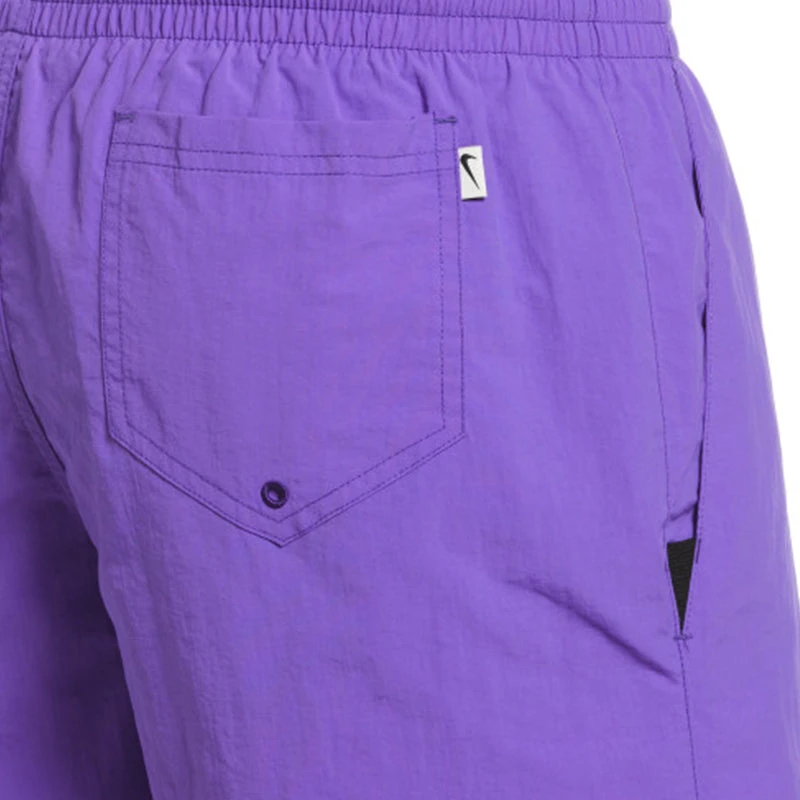 This Men’s Nike Swim Solid Icon 5″ Volley Short features a stretch waistband with exterior drawcord for customizable comfort. The swimming trunks, which are made with at least 75% recycled materials, are fully lined for an improved fit and feel. Side seam pockets with mesh pocket bags, a back patch pocket with grommet and an inner mesh media pocket efficiently drain water away and provide plenty of storage for small essentials. Comfortable and functional, they are sure to become a swimwear staple. (NESSB636)