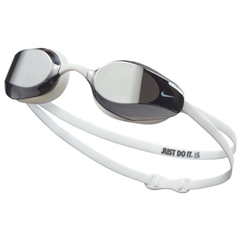Nike Swim Unisex Vapor Mirror Performance Goggle has a lower profile with curved and oversized lenses, maximizing the field of view while in the water. The soft and flexible gasket increases comfort without jeopardizing performance. They are made with the Nike Swift Track nose bridge system to ensure fast and easy customization. The mirrored coating helps block UV rays and reduces glare.