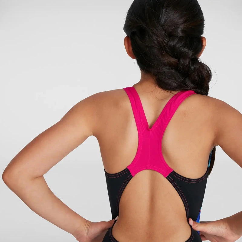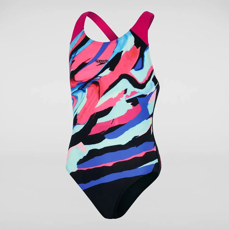 With its dazzling mix of pinks and blues, this colourful digital print Splashback swimsuit brings a burst of energy to lessons and training.